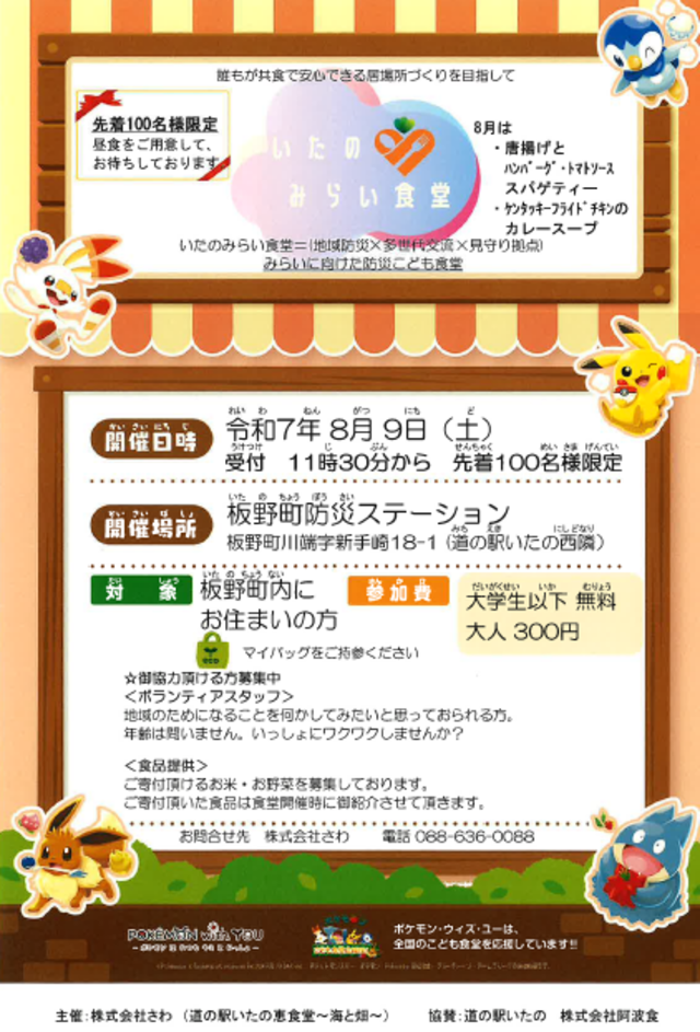 令和7年8月9日(土) 【いたのみらい食堂のご案内】