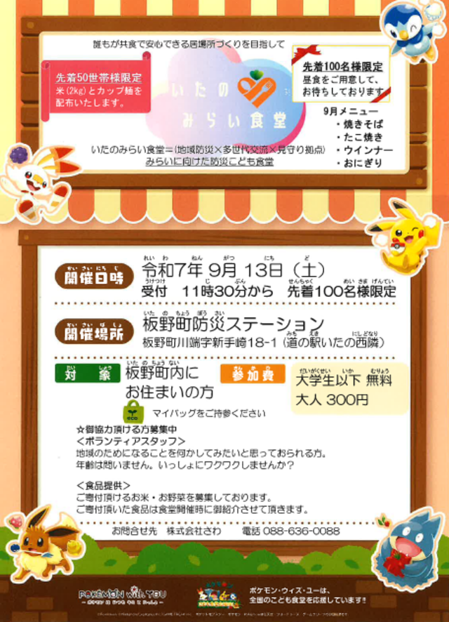 令和7年9月13日(土) 【いたのみらい食堂のご案内】