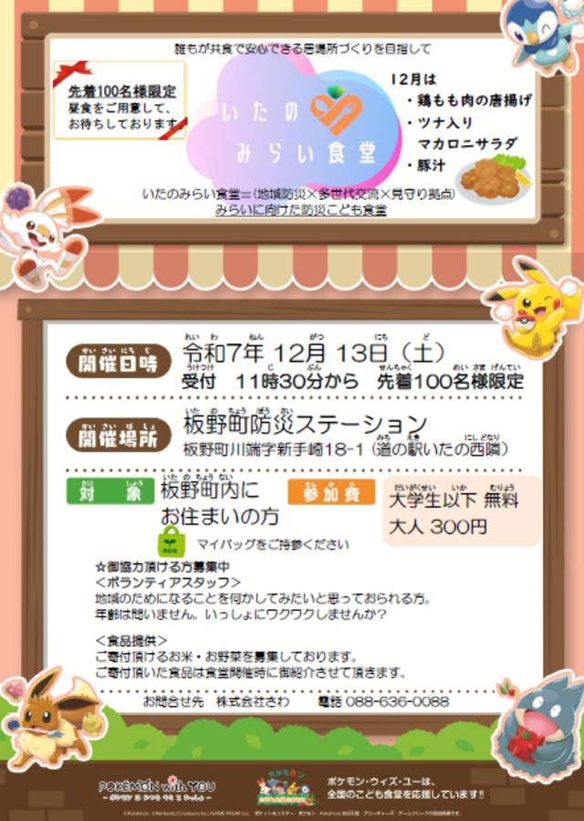 令和7年12月13日(土) 【いたのみらい食堂のご案内】